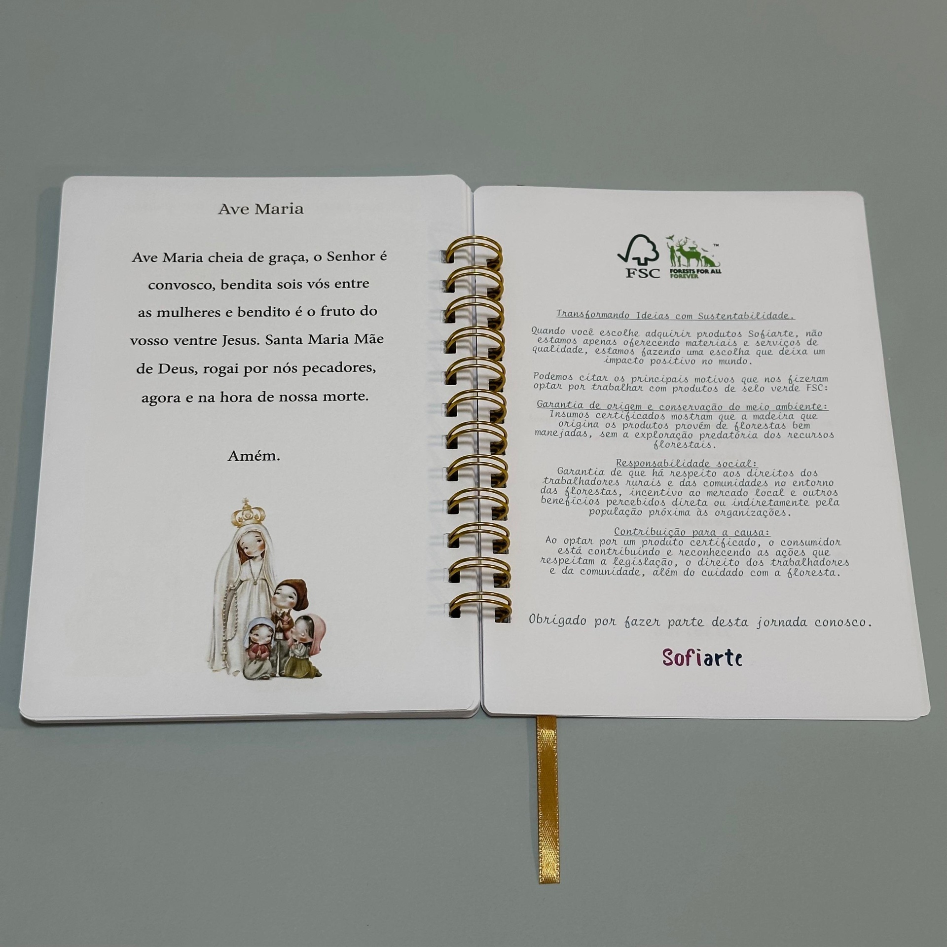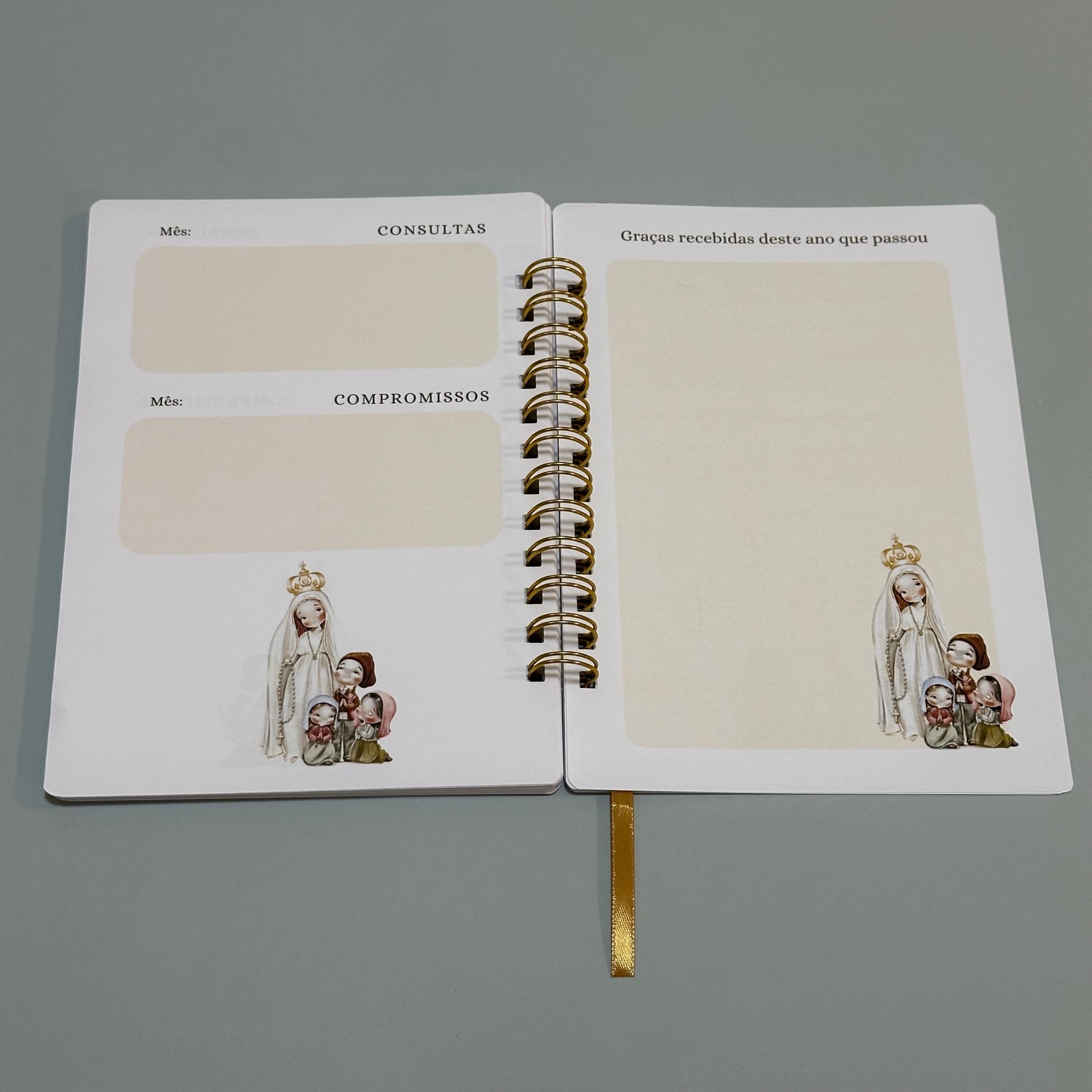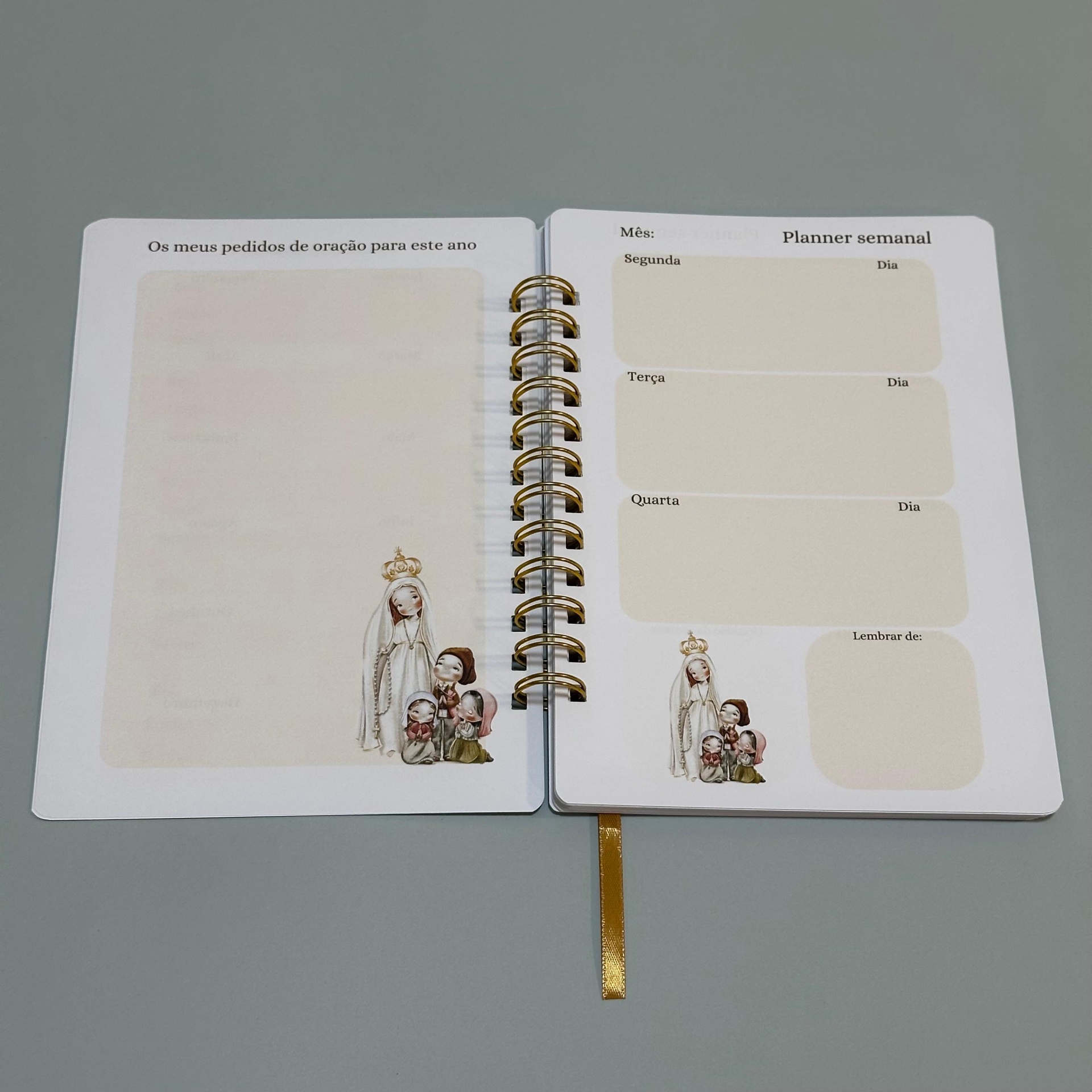 Com um design elegante e materiais de alta qualidade, é o companheiro ideal para planear a rotina, acompanhar compromissos e registar momentos especiais. Nele poderá organizar a sua rotina diária, tendo também como propósito incentivar a oração e momentos de reflexão espiritual.