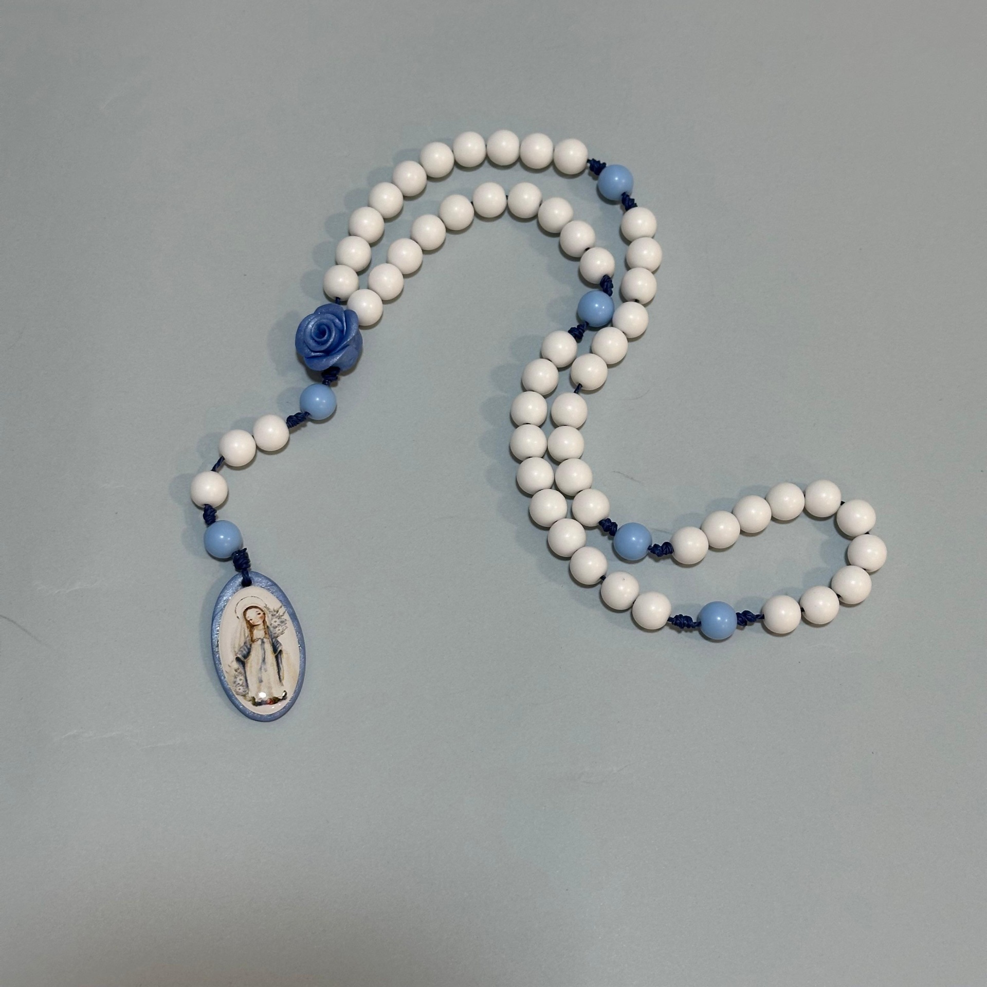 Inspirado na devoção à Nossa Senhora das Graças – símbolo de proteção e fé –, este terço é ideal para momentos de oração profunda, intercessão e consagração.